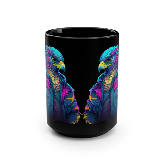 "Falcon Actual" Blue Falcon Black Mug, 15oz
