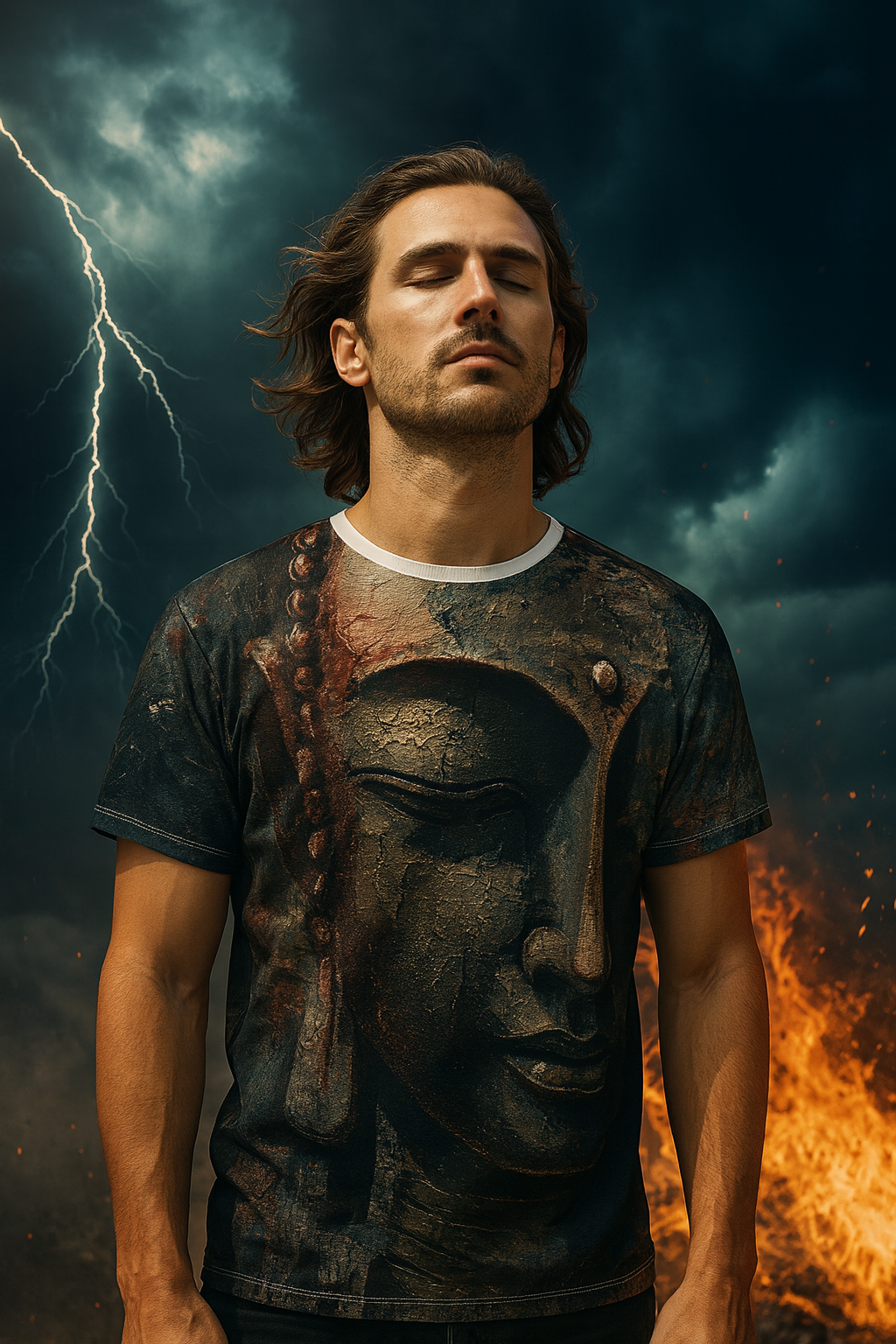 Buddah all over print tee designed for those seeking peace and tranquility in their everyday life. Perfect for yoga enthusiasts, spiritual individuals, and those who appreciate Eastern culture. Ideal for meditation sessions, yoga classes, and spiritual retreats.