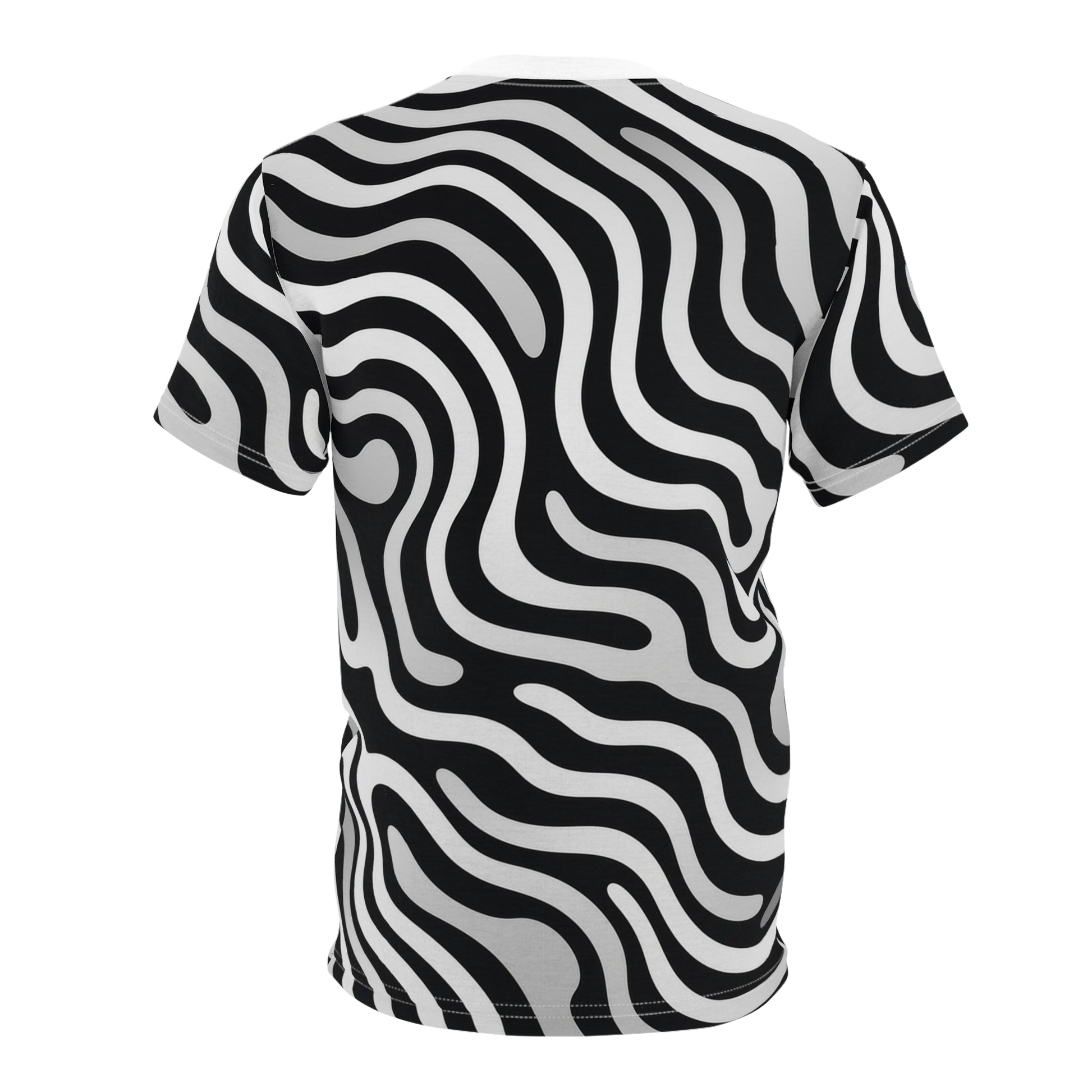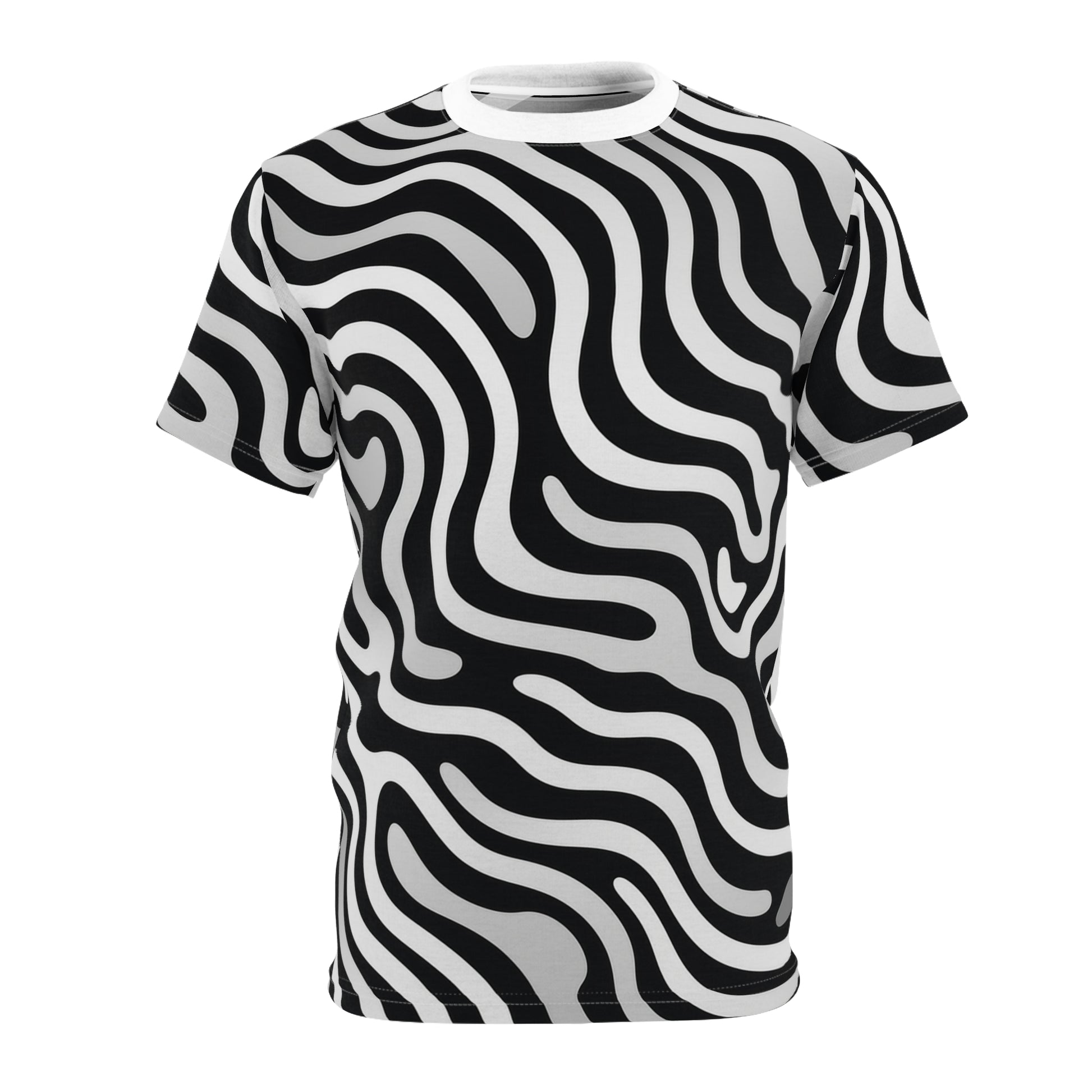 Make a bold statement with this eye-catching black-and-white wave print tee. The flowing, hypnotic pattern creates a striking optical illusion effect that’s both modern and timeless. Whether you see it as zebra-inspired, psychedelic ripples, or just pure abstract energy, this shirt guarantees you’ll stand out from the crowd.