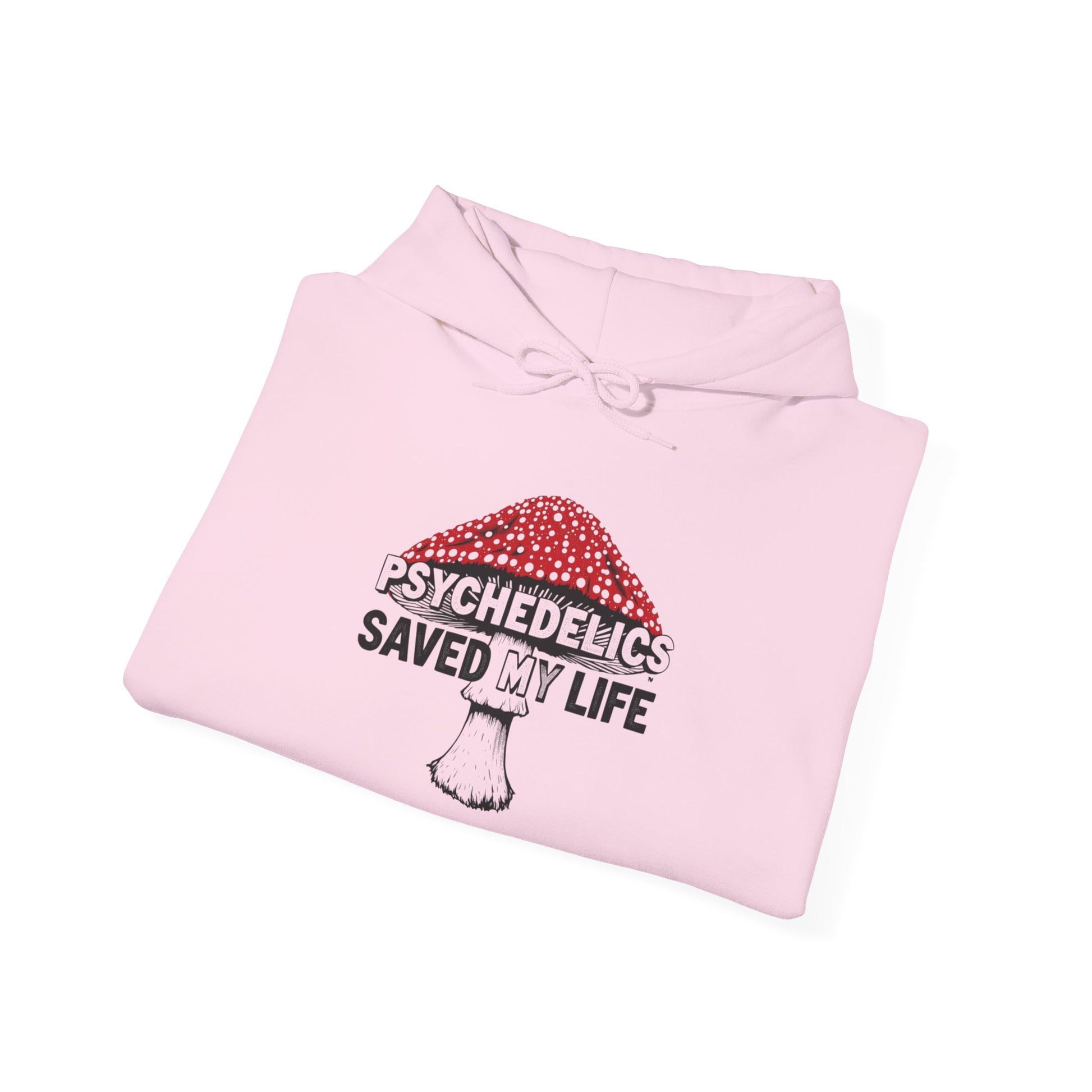 Psychedelics Saved My Life Hoodie – Mushroom Graphic Mental Health Awareness Pullover